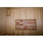 Светильники декорированы абажурами, сделанными из липы. Для усиления эффекта банных процедур часть стены парильни облицована плиткой из гималайской соли.